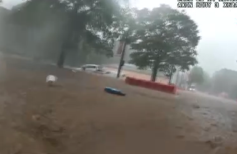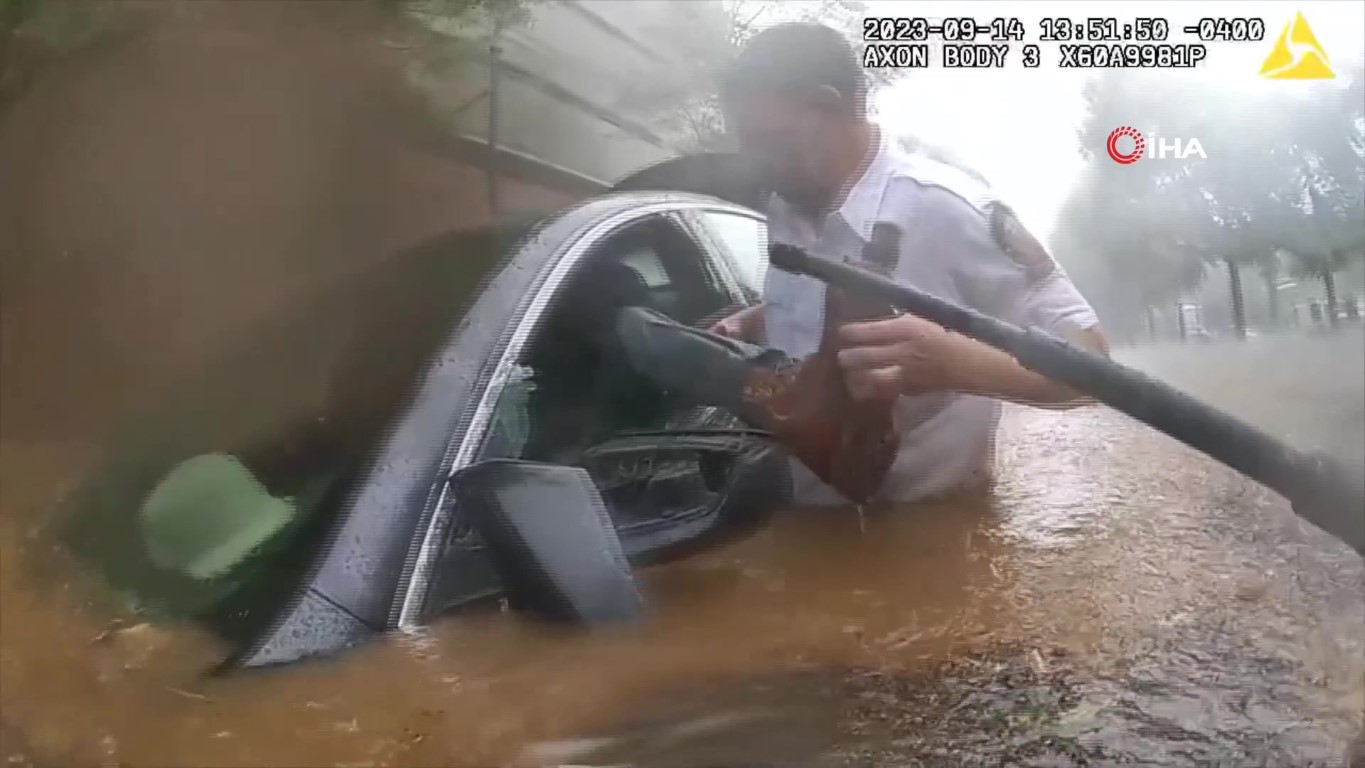 Sel suyuna saplanan araçtaki sürücü cam kırılarak kurtarıldı