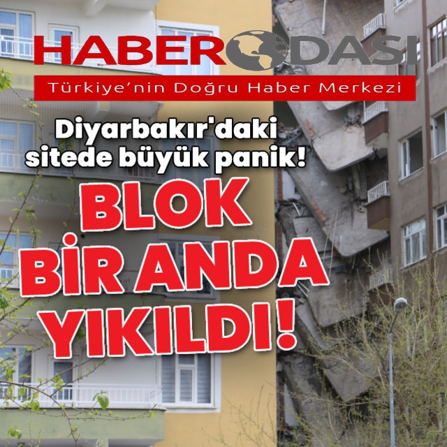 Diyarbakır'da ağır hasarlı binanın bir kısmının çöküş anı kamerada