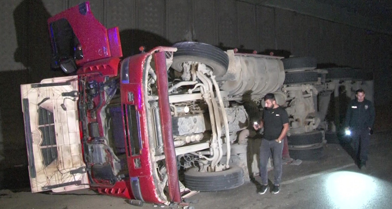 İstanbulda hafriyat kamyonu devrildi 1 yaralı