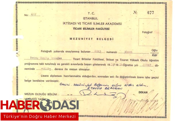 Cumhurbaşkanı Erdoğanın üniversite diploması yayınlandı