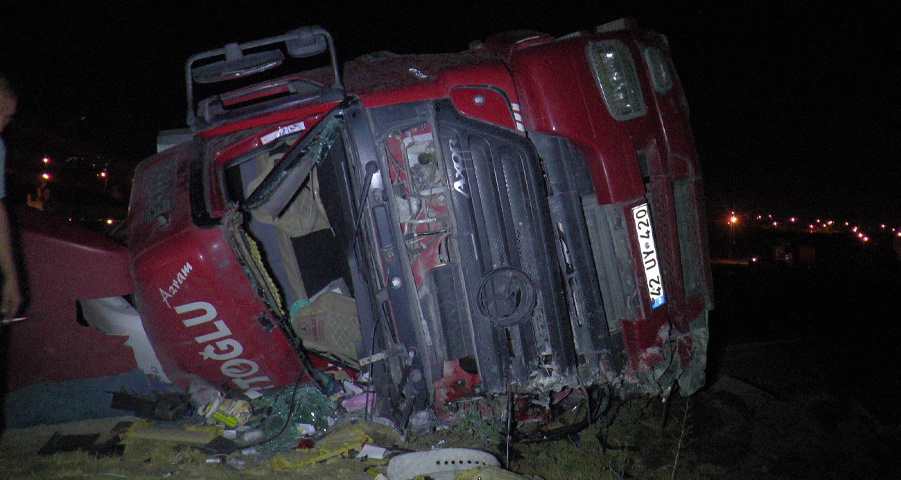 Plastik boru yüklü tır devrildi 1 ölü 1 ağır yaralı